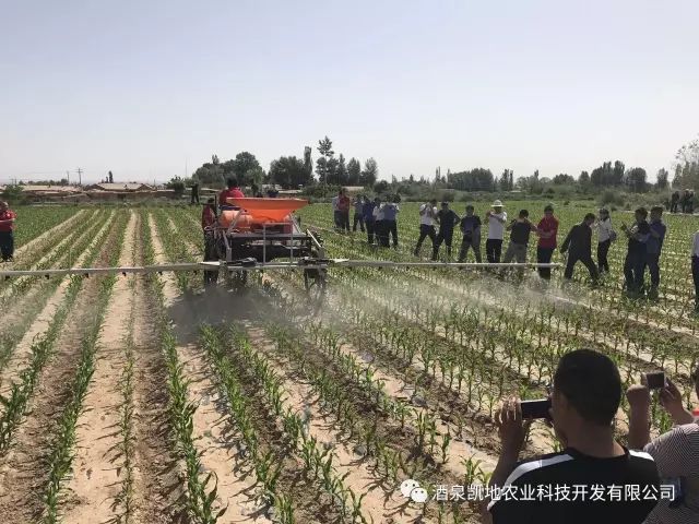 我們酒泉富民裕國(guó)農(nóng)業(yè)技術(shù)推廣專(zhuān)業(yè)合作社和酒泉?jiǎng)P地農(nóng)業(yè)科技開(kāi)發(fā)有限公司,于2017年6月1日在種業(yè)玉米制種基地上進(jìn)行了從巴西捷科多公司進(jìn)口的大黃蜂3WPZ500自走式噴藥施肥兩用機(jī)和加能炮AJ-401噴藥機(jī)以及無(wú)人飛機(jī)的 植保聯(lián)防演示,F(xiàn)場(chǎng)會(huì)邀請(qǐng)了市區(qū)兩級(jí)植保站、經(jīng)管站和農(nóng)業(yè)局主要領(lǐng)導(dǎo)參加,各種業(yè)公司、酒泉農(nóng)墾公司、西域陽(yáng)光番茄制品公司、大業(yè)草業(yè)公司、北京新禾豐、興農(nóng)辣椒公司及種植大戶約200余人觀摩了本次演示。