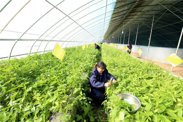 △在河北省隆堯縣大張莊村大棚內(nèi),一排排無(wú)土栽培的種植槽里,空心菜、蒜苗、芹菜、香菜等各類蔬菜青翠芳香、長(zhǎng)勢(shì)喜人。